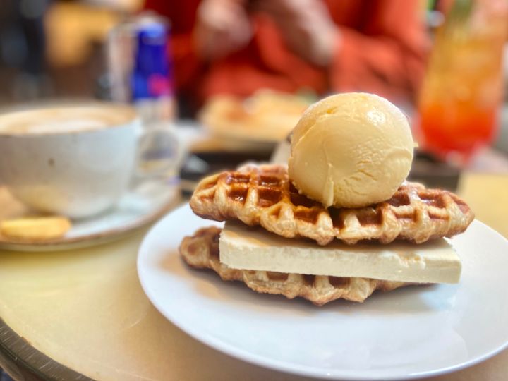サクサクのクロッフルとヒンヤリとしたバニラアイスは、夏でも涼しく頂けるのでこれからの季節にもおすすめ。