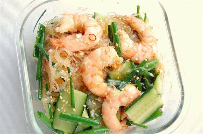 調理時間は8分。今回、自分で生のエビを茹でたので少し時間がかかりましたが、ボイルした状態で売っているエビを使えば、5分くらいで出来ると思います。ねぎときゅうりを切って、春雨を茹で、特製ソースと和えるだけなので、難しい工程もありませんでした。