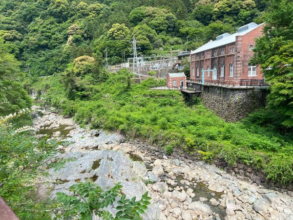 川を挟んだ向こう側には国の登録有形文化財に指定されている旧端出場水力発電所が見えました。こちらは2023年3月28日に一般公開を開始したばかりで、入館料無料で見学できるようです。
