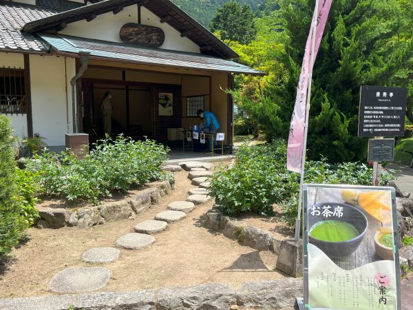 芝生広場の脇には登録有形文化財に指定されている泉寿亭(せんじゅてい)。昭和12年に建てられた数寄屋造りの建物の一部が1991年にここに移築されています。取材の日はお茶席イベントが催されていたので参加させていただきました。