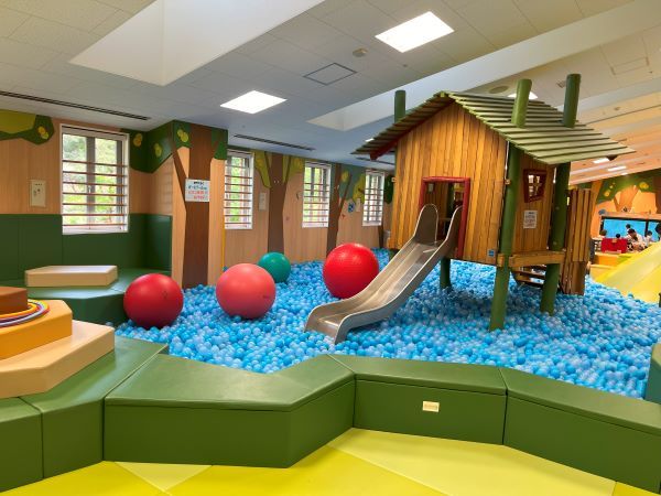 本館4階にはあかがねキッズパークと別子温泉~天空の湯~がありました。 私たち家族は何も下調べをしていなかったので、なにやらキッズパークもあるみたいだから少し覗いてみようくらいの気持ちで行ってみましたが、なんとボーネルンドプロディースの本格的なキッズパークではないですか!!ということで入って2時間全力で遊びました!! こちらのキッズパーク、2023年4月にリニューアルしており新たな遊具が加わっているようです。