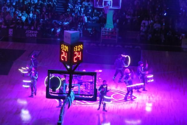 初めてB.LEAGUEの試合を生で観戦しましたが、幼児連れでも大変楽しむ事が出来ました。スポーツの試合でありながら、エンターテインメント要素が豊富で、一度会場に入れば、常にワクワクするような工夫が施されています。 .850試合前には選手の紹介、初心者には有難い応援練習があり、試合中は、タイムアウトやクオーター間等、コートが空けば、短時間でもチアリーダーズ「B-ROSE」の方々がパフォーマンスして下さいます。ハーフタイムには、世界的にも珍しい、LEDドラムを用いた日本初のプロドラムパフォーマンス集団「鼓和-CORE-」によるパフォーマンスがありました。