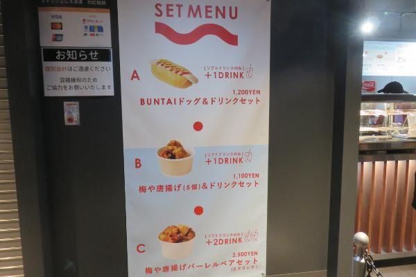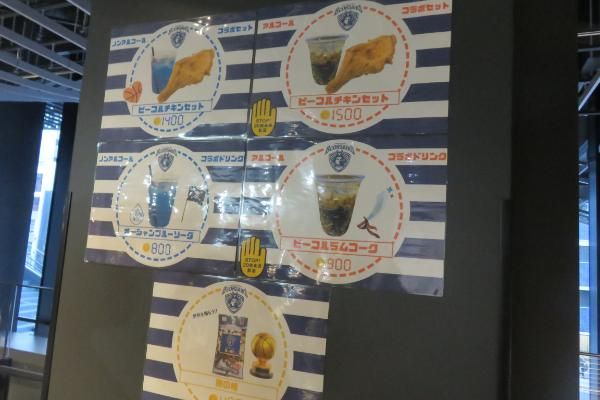 エントランスに入って左側には、フードスタンドがありました。創業111年の老舗鶏肉専門店「梅や」の唐揚げや横浜ビールとのコラボビール「グルービーラガー」があり、「横浜」を感じます。