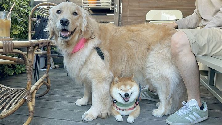 ご紹介するのは、豆柴うに&ゴールデンレトリバーおから(@uni_okara0725)さんがXに投稿された写真です。 そこには、豆柴の『うに』ちゃんのかわいいある行動が。