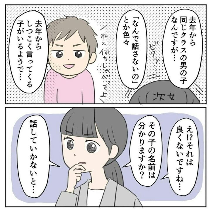 先生から困っていることを聞かれたまりまりさんは、次女が同じクラスの男の子に「なんで話さないの?」などとしつこく言われることに困っているという話もできました。