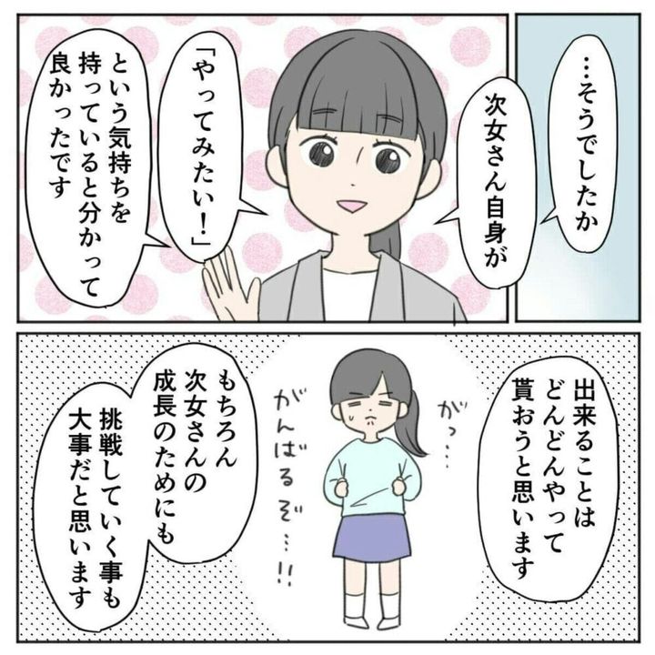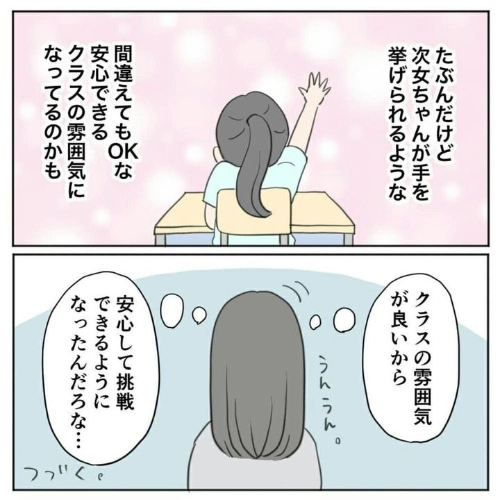 先生に場面緘黙症のことを詳しく伝えると、先生は次女がどう思っているのか知りたいと積極的にかかわろうとしてくれて、まりまりさんは心強く感じました。