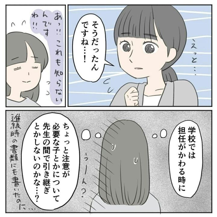 次女が3年生になり、新しく担任になった先生との面談で、次女のことがまったく引き継ぎがされていないことに戸惑うまりまりさん。