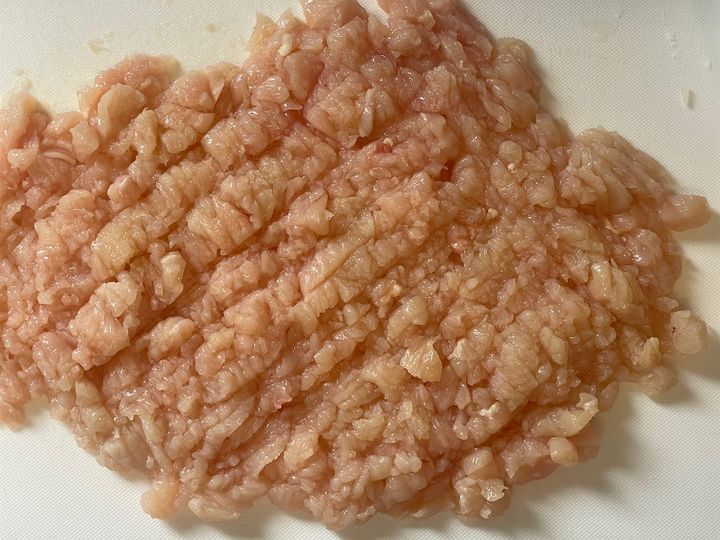 鶏むね肉を粗みじん切りするひと手間があり、鶏ひき肉を使ったらいいのでは?と思っていましたが、自分で粗みじん切りにした方が肉肉しくジューシーに仕上がり、時間が経ってもおいしい♡