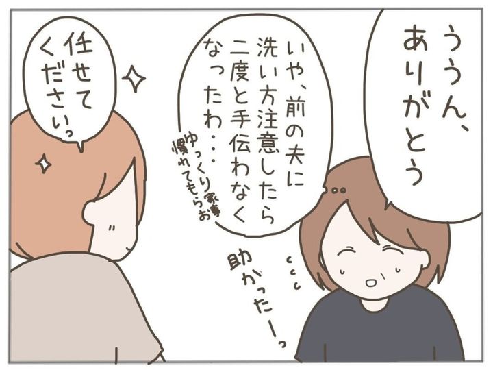そして片付けを申し出てくれた佐藤くんでしたが、どうもあまり得意ではなかった様子…。もやっとするミキ子さんでしたが、こんな時は、指摘するよりも「やってくれるだけいい」と思うことにしたようです。