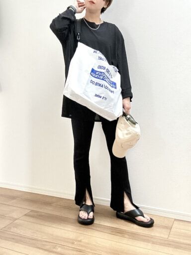 両サイドにスリットが入ったオーバーサイズのシアートップスは、体が泳ぐルーズなシルエットながらも透け感が女っぽいのでバランスが取りやすく、リラクシーなコーデが楽しめます。