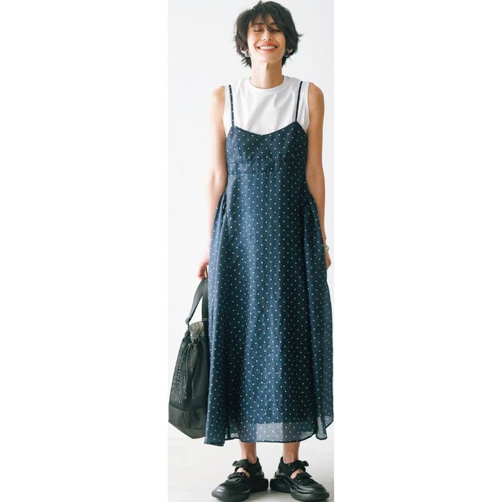 ドット柄【キャミワンピ】で大人可愛く!コクーンシルエットで洒落見え