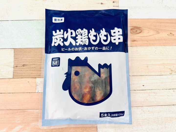 『業務スーパー』の冷凍コーナーには、から揚げなど鶏料理のさまざまなバリエーションが揃っています。その中でも人気なのがこちら! 炭火で丁寧に焼いて、タレで味付けされた鶏もも肉の串焼きです。5本入りなので、1本あたりがなんと約40円というコスパの良さ!