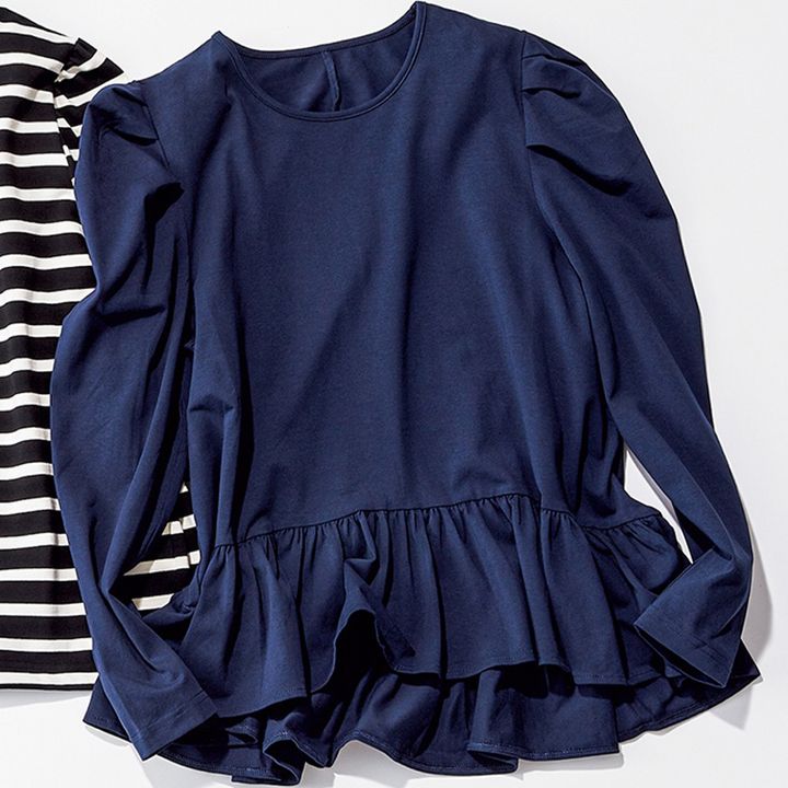 バタバタな朝、着る服がない!と焦らないために洗い替え用2枚買えちゃう?プチプラなペプラムロンTはママの強い味方。 カットソー¥1,490(coca)