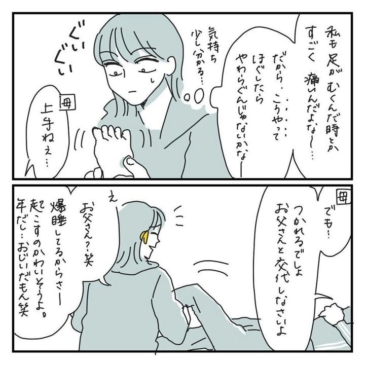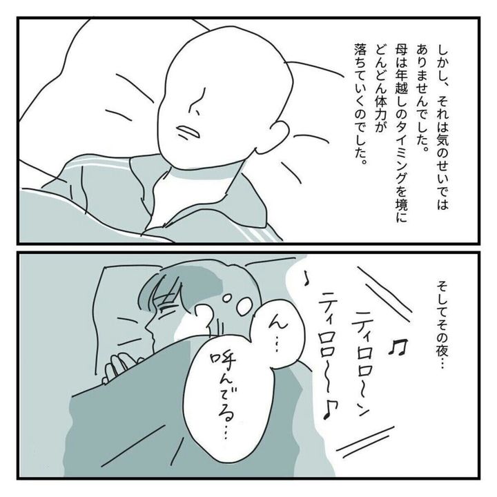 愛する母親とはいえ、介護は精神的にも体力的にも、ツラく感じてしまいますね。深夜に起こされるのも、寝不足になってしまいます。そんな日々の中、突然かけられた母からの温かい言葉。毎日大変だからこそ、胸にグッとこみあげてくるものがありますね。