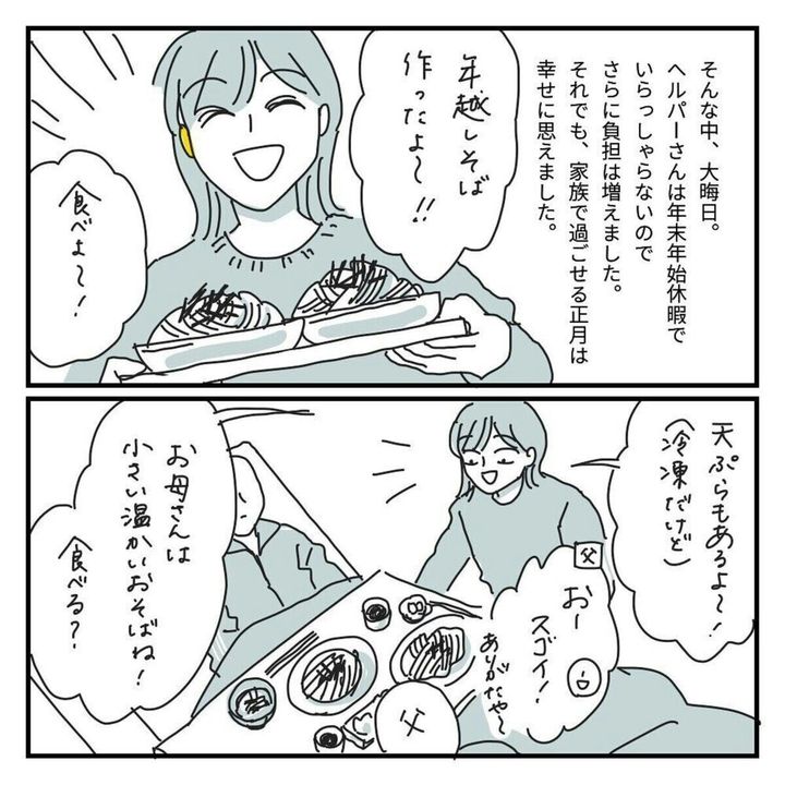 年末年始はヘルパーさんもお休みで、家族への介護負担が重くなっていました。それでも、家族で過ごした年末は幸せだったと振り返る、キクチさん。
