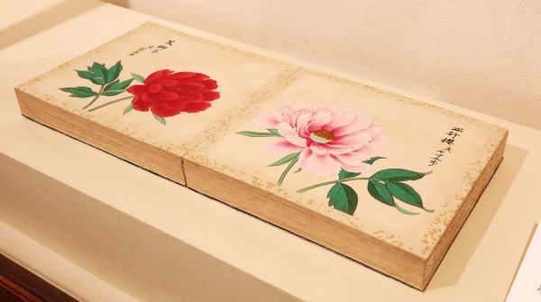 熊本城の南、藩主の屋敷「花畑屋敷(はなばたやしき)」に植えられた牡丹と芍薬60図が描かれた《牡丹芍薬生写》。 花好きの殿さまであった10代藩主・細川斉護(ほそかわなりもり)の時代に制作されたそうです。