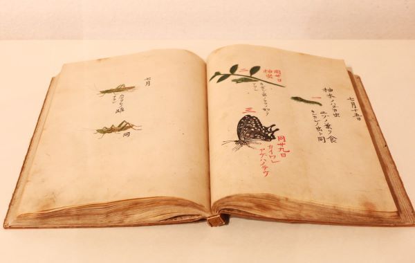藩主・細川重賢にとって参勤交代は、様々な虫や植物を目にする絶好のチャンスだったようです。 《艸木生うつし》《虫類生写》に記載された共通する年号や地名と重賢の「懐中日記」を照らし合わせると、重賢が参勤交代の途次に虫や植物の観察をしていたことが分かるそうです。