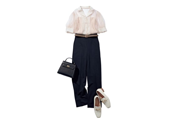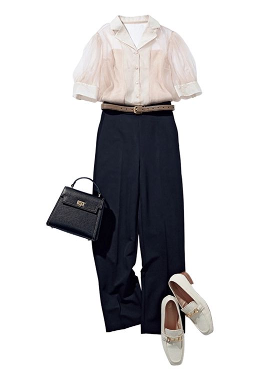 セットアップ(パンツ)¥19,910/ミラ オーウェン ルミネ新宿2店 ビスチェ風セット¥16,500/SNIDEL ルミネ新宿2店 スクエアバッグ¥13,750/ノエラ ローファー¥17,600/Stola. ベルト¥990/GU