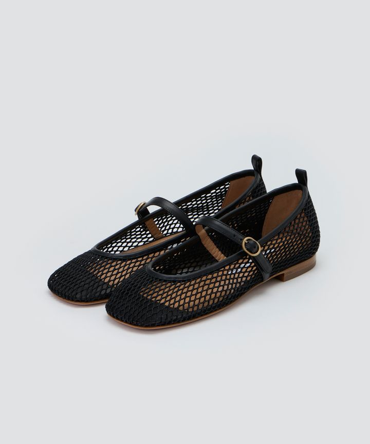 3. メッシュの「フラットシューズ」でサンダル前の足元おしゃれを更新!