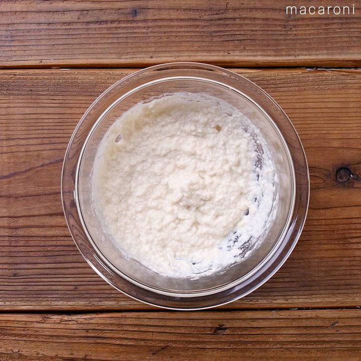 1: ボウルに豆腐、鶏ガラスープの素、片栗粉を入れ、豆腐を崩しながら混ぜます。