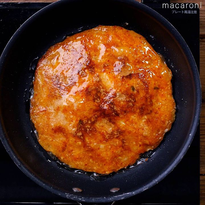 4: フライパンを中火で熱し③を焼き色がつくまで焼きます。