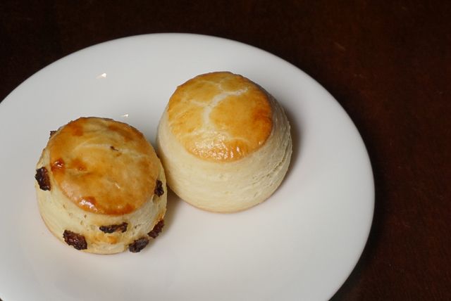 「スコーン(各220円)」はプレーンとレーズンの2種をご紹介。ザ・リッツ・カールトン大阪のスコーンは、しっとり食感が特徴です。手でちぎるとバラバラになり、口の中でボソボソと水分が奪われがちなスコーンですが、そんなことはまずありません。ふんわりやわらかく、とにかく食べやすいのです。