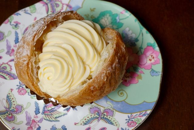 デニッシュはエアリーでふかふか、クリームはふっくらとしたテクスチャで、見た目よりも軽いのが特徴です。筆者の拳よりも大きなビッグサイズですが、意外にもあっさり完食できました。まるでシュークリームのようなスイーツです。ケーキボックスから登場すると喜ばれそうな華やかなビジュアルは、手土産にもおすすめ。