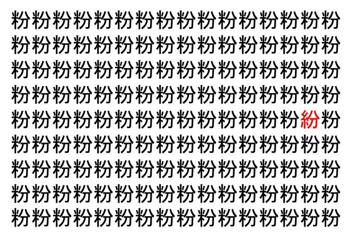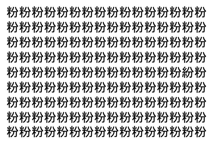 【脳トレ】「粉」の中に紛れて1つ違う文字がある!?あなたは何秒で探し出せるかな??【違う文字を探せ!】