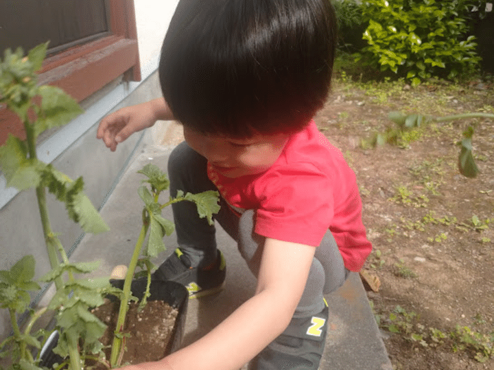 ミニトマトとナスは最近花をつけてくれ、息子たちのテンションも爆上がり!彼らは欠かさず水やりや草取りをして、野菜たちに愛情を注いでいます♪