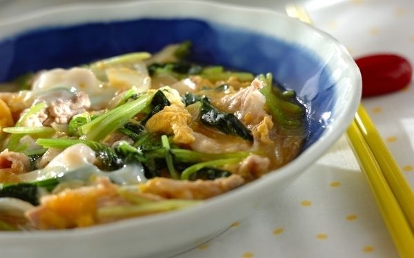 ミツバを粗く刻んでスープに入れると、香りが存分に楽しめます。シャキシャキとした食感とふんわり卵が相性抜群。水溶き片栗粉でゆるくとろみをつけるため、冷めにくいです。あっさりしていてお酒の〆としても大活躍!
