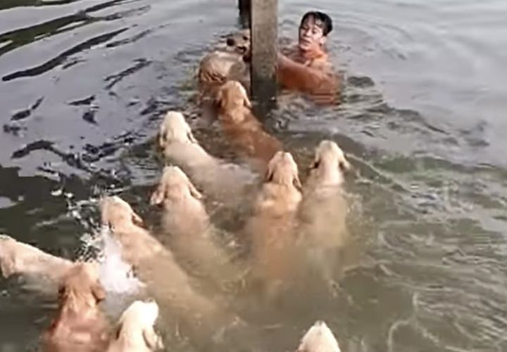 犬「溺れてない?大丈夫?」心配で大型犬がたくさん助けに来た。