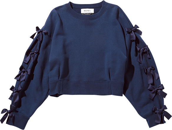 袖中心を閉じるようにして付いているサテンリボンが何ともロマンティック。スエット¥35,200(ミュベール)