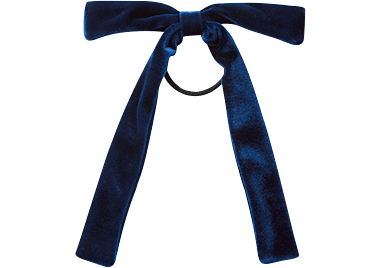 リボン付きのヘアゴムはコーデのハズしに活躍の予感。ベロアやサテンなど質感が安っぽくないものを選ぶのがベターです。ベロアヘアアクセ¥8,800(IRIS47/フーブス)