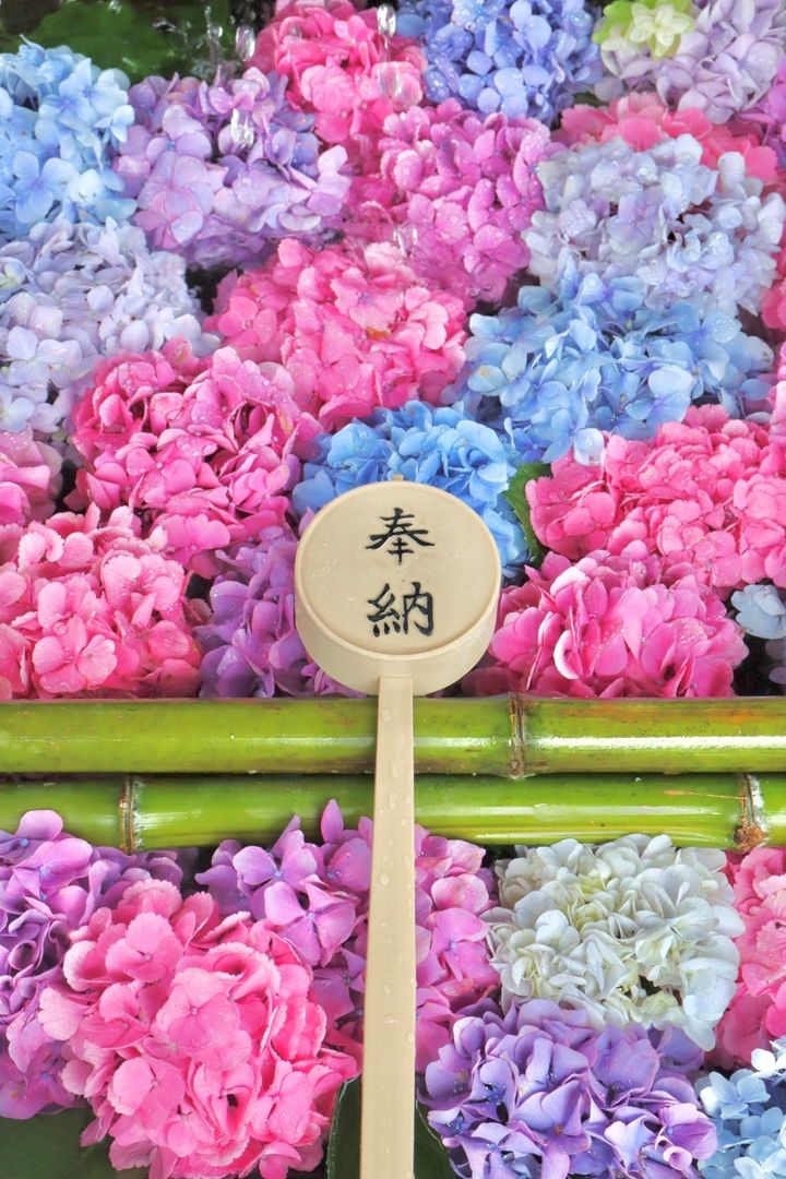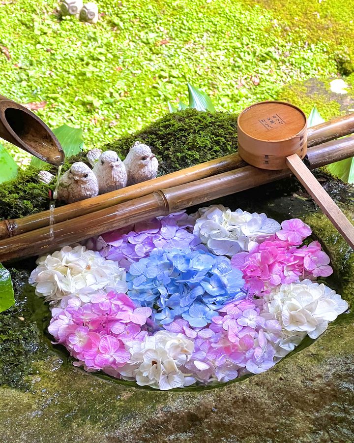 毎年6月初旬~7月上旬にかけて、京都最⼤規模の約5,000株のあじさいを鑑賞することができる柳谷観音6月の風物詩。境内に咲き誇るあじさいはもちろん、あじさいの装飾や花手水も見所です!