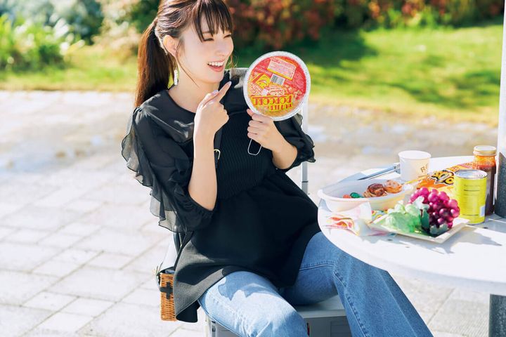 チュニックは身ごろがニット地なので、締め付けがなく快適。レイヤード風の旬なデザインだから、休日イベントで着映える華感が♡ デニムとの力が抜けた着こなしで、フレンドリーな先輩を印象づけて。