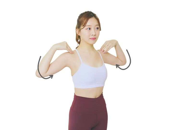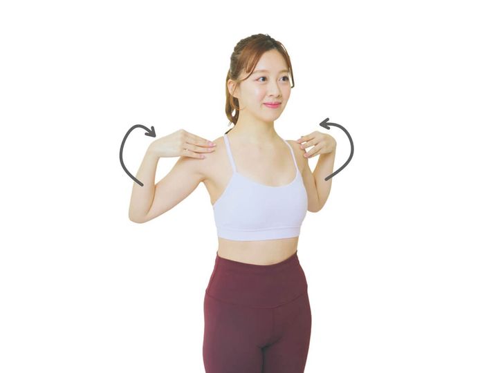 自分の可動域に合わせて気持ちよく回して。回数よりも〝ほぐれたな〟という感覚が大事。ほぐれるとその後のストレッチもやりやすい!