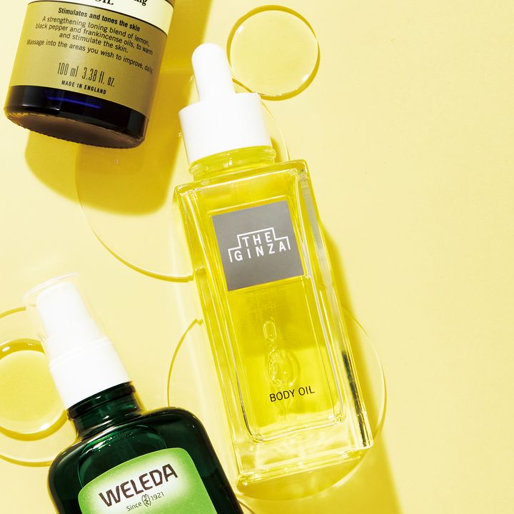 ダイエットやトレーニングを頑張っても、ボディの肌がなめらかで引き締まってなければ印象は台なし。ボディオイルのお手入れでつややかでしっとり肌を目指しましょう。すべりよいテクスチャーならマッサージに最適。精油がブレンドされた場合、さらに巡りをサポートしてくれます。