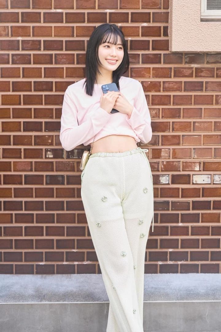 ロンTは着回し。バラモチーフつきパンツ 27,500円/ヴェーエル・バイ・ウィー(ススプレス) バッグ 3,289円/ROPÉ PICNIC PASSAGE(ジュン)