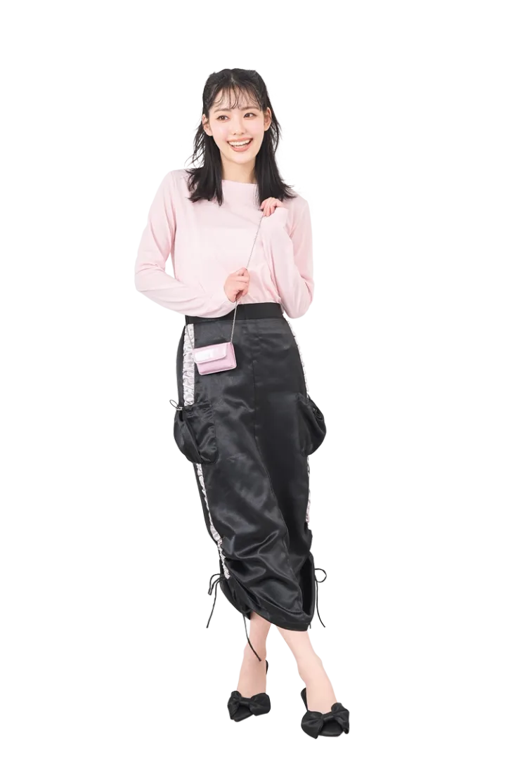 ロンTは着回し。サテンカーゴスカート 5,499円/W♥C バッグ 参考商品/STAND OIL(MUSINSA GLOBAL STORE) ミュール 7,900円/MORE self LOVE