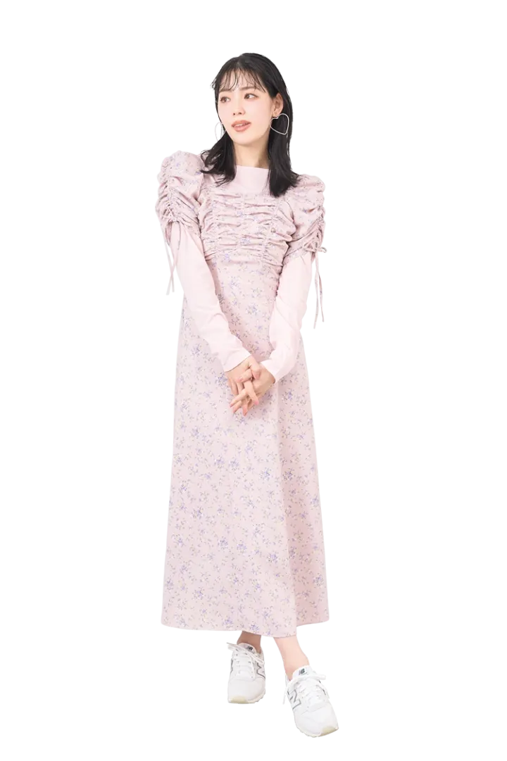 ロンTは着回し。小花柄ワンピース 16,940円/SNIDEL イヤリング 550円/パリスキッズ 原宿店 スニーカー 11,990円/ニューバランス