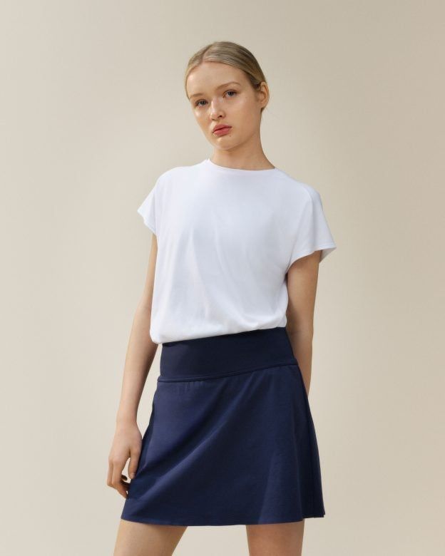 ホワイト、ネイビーをメインにしたカラーリング、適度にフィットし、カラダを美しく見せるシルエットなど、シンプルかつスタイリッシュなデザインで、ゴルフウェアとしてはもちろん、ジムやヨガなど様々なスポーツシーンに活躍。さらに、日常着と組み合わせれば、オフィスシーンや休日カジュアルとしても大活躍。細部にまでアスリートの声を反映したデザインが、すべての人の日常に研ぎ澄まされた機能美をもたらします。