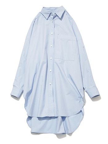 ライトブルーシャツ /サクラ(インターリブ) 「ボトムを選ばず合わせられて、肩ひじ張らずにシャツを着こなせるBIGシルエット。ワイドパンツと合わせるほか、ワンピ感覚でレギンスを仕込んだり、ショートボトムを覆い隠して履くのにも最適」(スタイリスト・船戸唯さん)