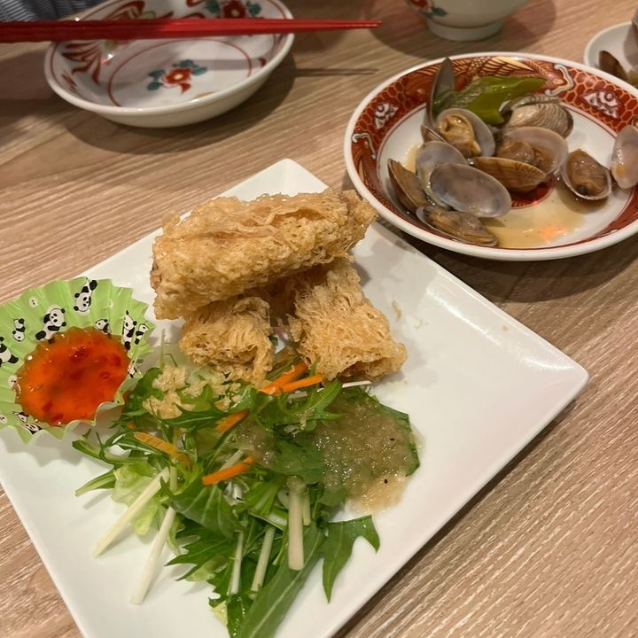 出典:MORE・台湾名物!アサリの紹興酒漬け(420円)紹興酒が効いていてお酒が進む、、!・海鮮網春巻き(748円)揚げたてで提供されるのでサックサク!付け合わせのチリがパンダなのがキュート。