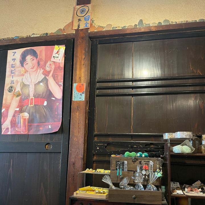 昔ながらのおもちゃや、小物ケース、アクセサリーなどが置かれています。