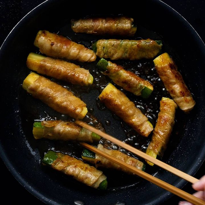 3. 甘辛味でごはんがすすむ!ズッキーニの肉巻き