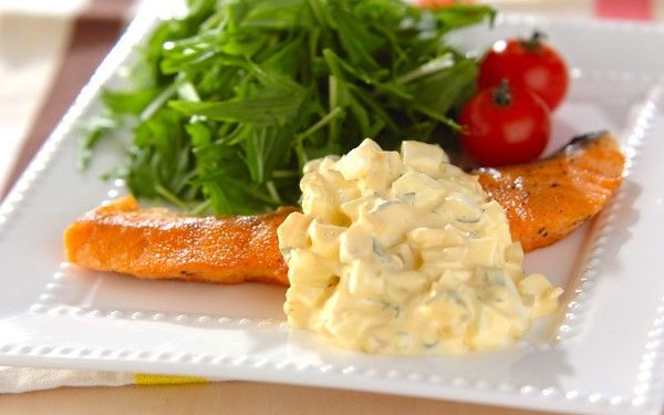 鮭にらっきょうタルタルとチーズをトッピングしておいしさ倍増! 子どもウケも良く、魚が苦手な方でも食べられそうです。見た目も豪華で、おもてなしやパーティーにも◎。