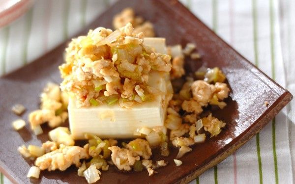 鶏ひき肉のそぼろに刻んだらっきょうと白ネギをプラスする、おつまみ冷奴です。らっきょうの食感がアクセントとなり、ヘルシーで食べ応えがあります。暑い日の晩酌タイムにいかがですか?