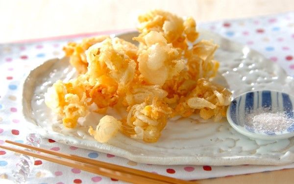 甘酢ショウガとらっきょうをかき揚げに。油と合わせることで素材の甘さが引き立ち、何もつけなくてもおいしいです。そばやそうめんのトッピングにしても、もちろんOK。