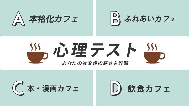 3. 【恋愛心理テスト】あなたがカフェのオーナーになるとしたらどんなカフェ? あなたの『社交性の高さ』がわかります