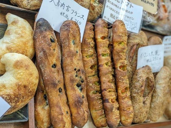 夏を感じる、紫蘇やトマトを使用したフランスパンや、大納言を入れたものなど、フランスパンが充実しています。